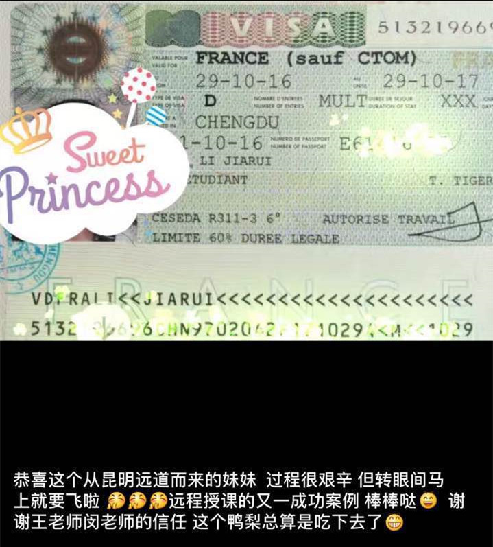 這位朋友是云南的妹妹哦~是楊老師網(wǎng)絡(luò)授課的學(xué)生,也拿到簽證啦~祝賀~