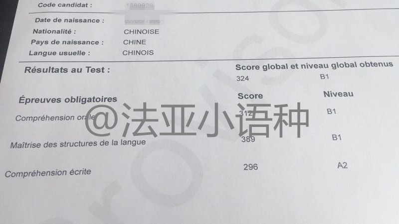 考試類型:TCF-TEST所報(bào)課程:出國班周麗同學(xué)TCF B2