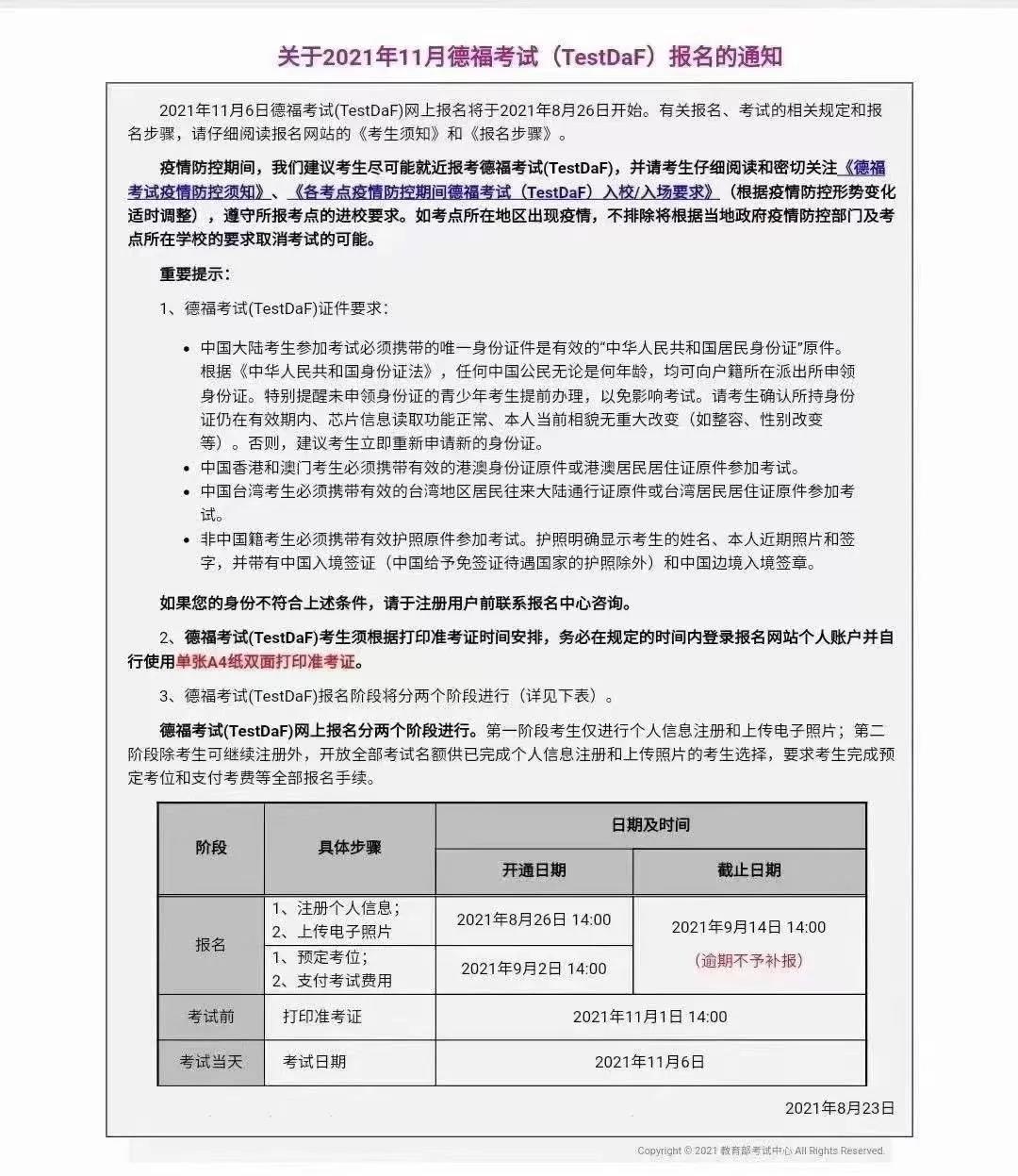 德語資訊丨11月德??荚嚱袢照介_啟注冊(cè)!