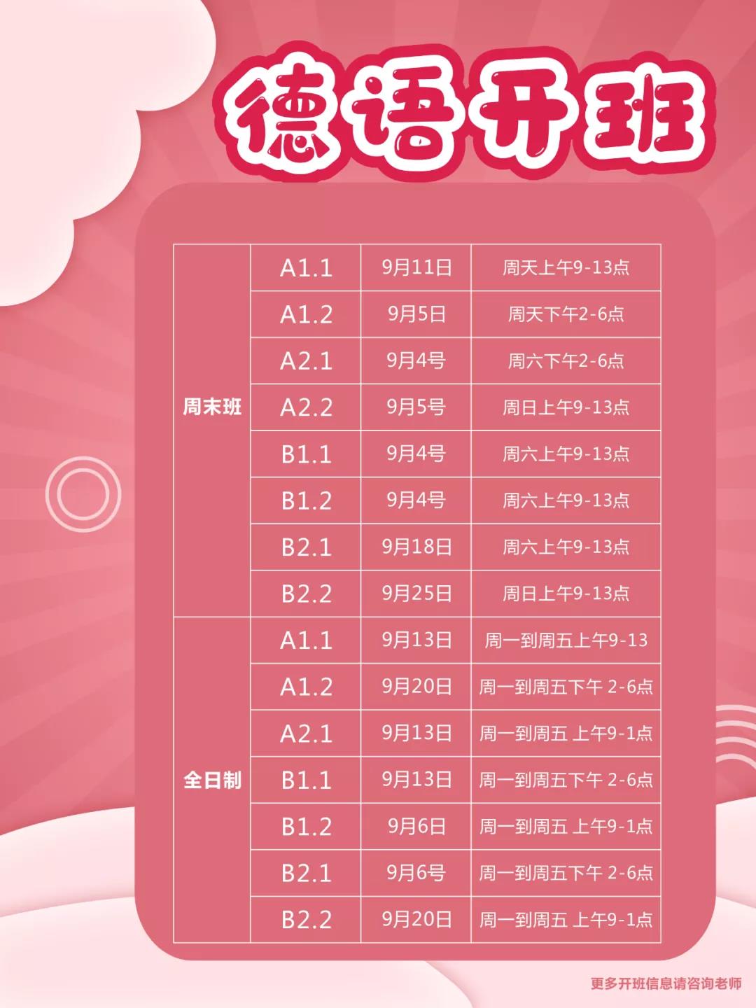 法亞小語種德語9月開班計(jì)劃↓