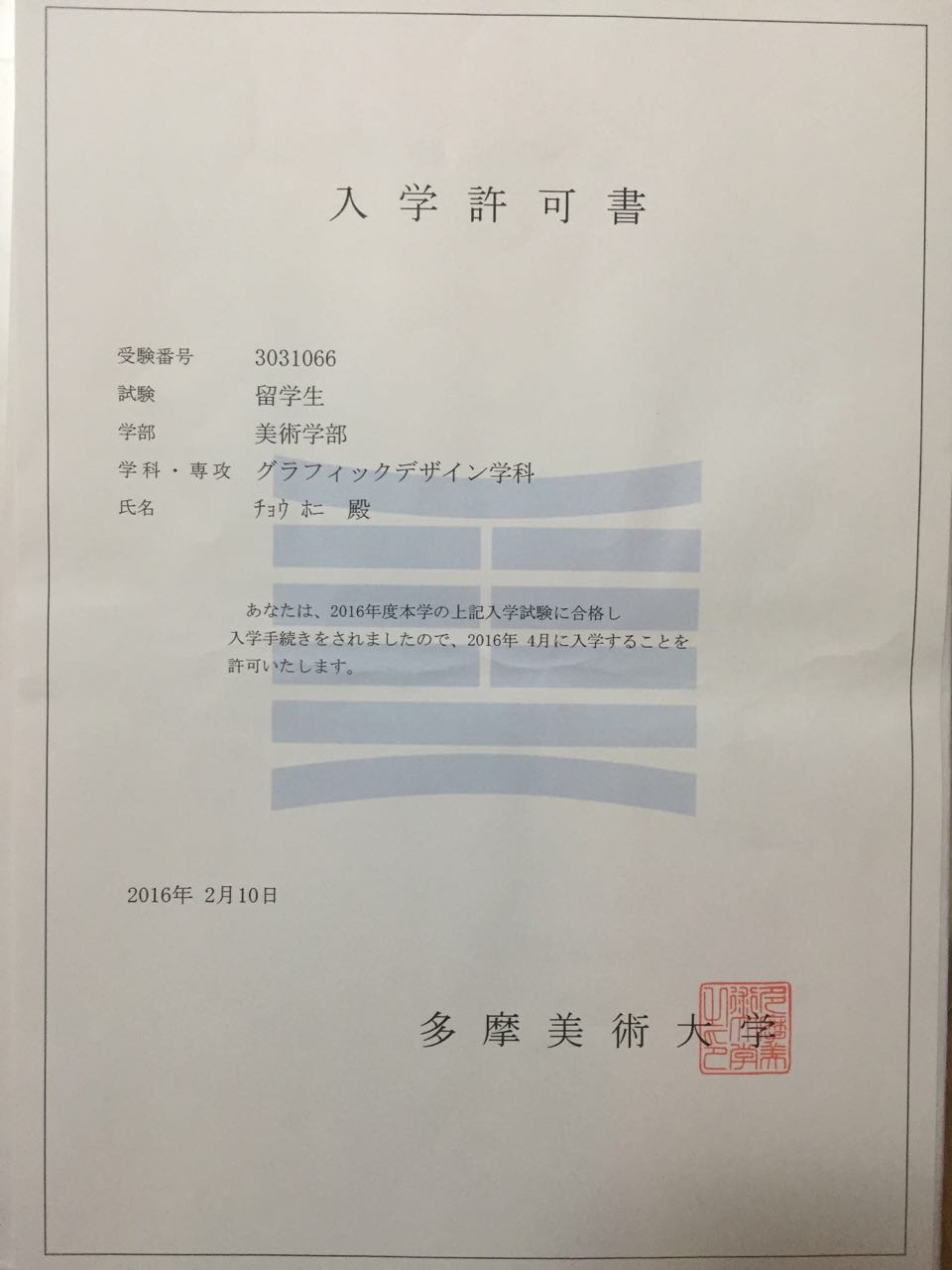 趙邦妮是法亞日語部孫老師的學(xué)生,在法亞學(xué)習(xí)日語的同時,幫你就在申請日本的美術(shù)大學(xué),現(xiàn)在拿到offer啦~還是日本數(shù)一數(shù)二的美術(shù)大學(xué)——多摩美術(shù)大學(xué)哦~趕緊把這個還熱乎乎的offer給大家分享一下!