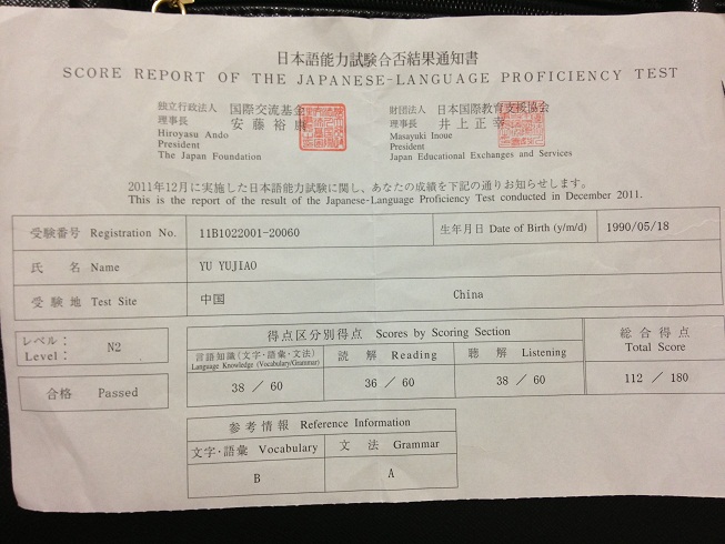 于同學以112分的成績通過了N2考試,這本身已經(jīng)是個非常優(yōu)異的成績了,但于同學依然十分不滿意,因為考前的每一次模考,我們的于同學都是至少會考到140分的!