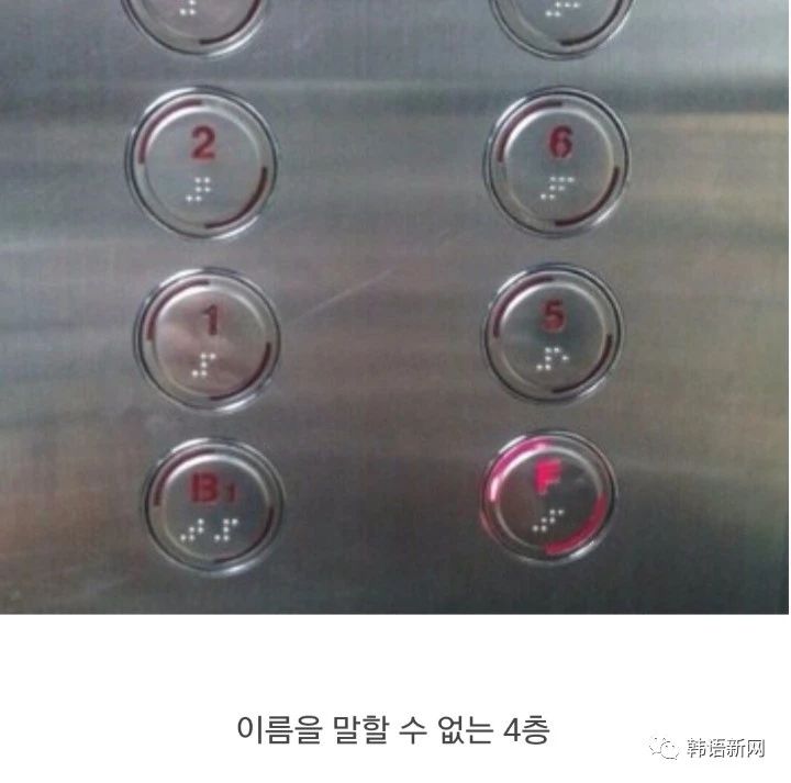 1. 數(shù)字4代表不吉利或讓人聯(lián)想到死亡,所以韓國電梯的4樓都會使用F來代替。