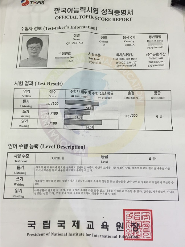 考試類型:TOPIK所報(bào)課程:韓語VIP通過了TOPIK4級的考試,離5級就差4分,真是太遺憾啦……