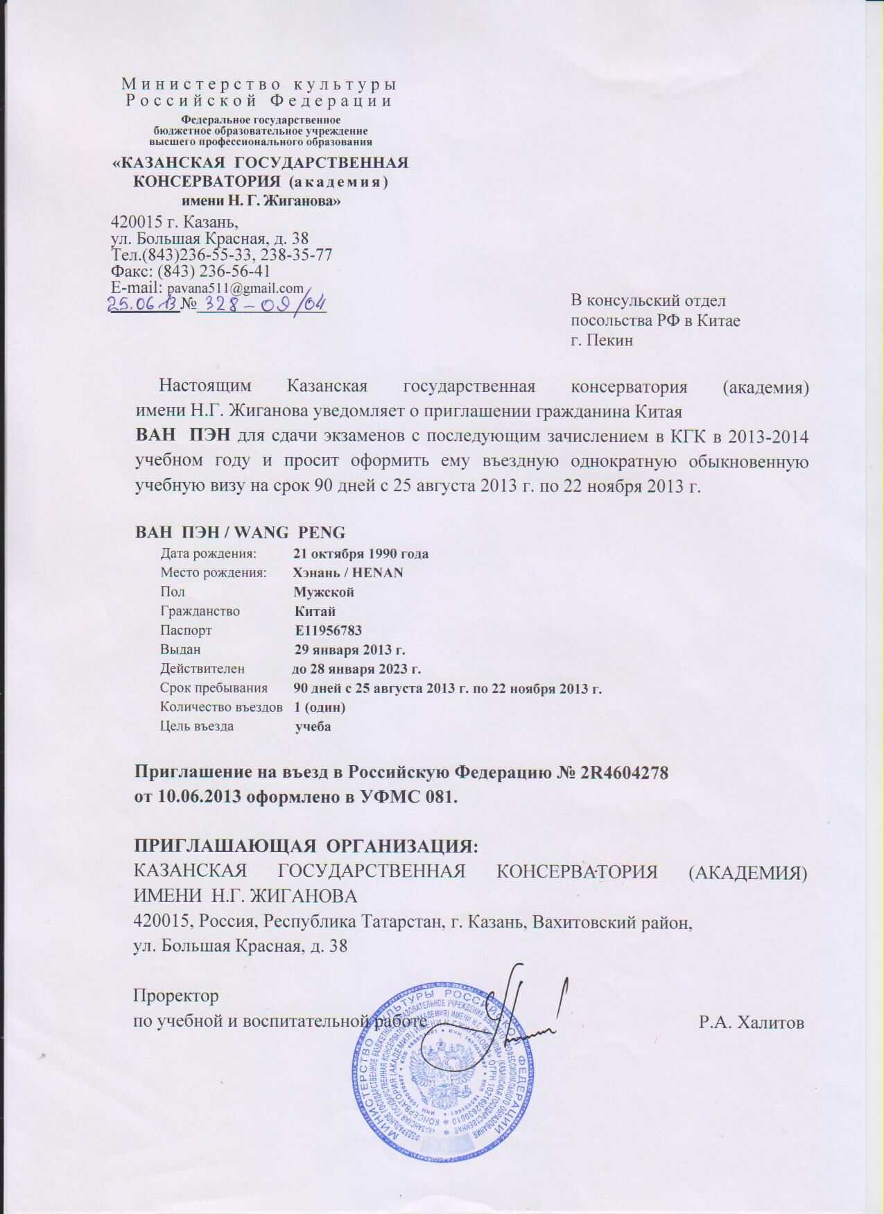 王同學(xué)被俄羅斯大學(xué)錄取
