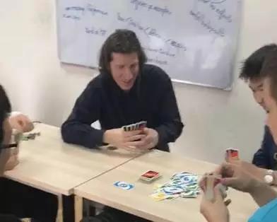是的,他們居然拖著外教老師一起打牌,我大天朝獨(dú)有的斗地主,而且是親手制作的,可以看出他們對(duì)斗地主的鐘愛了嗎。我們Davy老師都被帶壞了!不過據(jù)說開始兩盤,幾個(gè)人還是有點(diǎn)優(yōu)勢(shì),后面老師知道玩法了幾個(gè)人就贏少輸多了。如果這不算欺負(fù)外教,那你們讀讀這個(gè)名字Nytaille(用法語讀)你們就知道該心疼我們外教了。