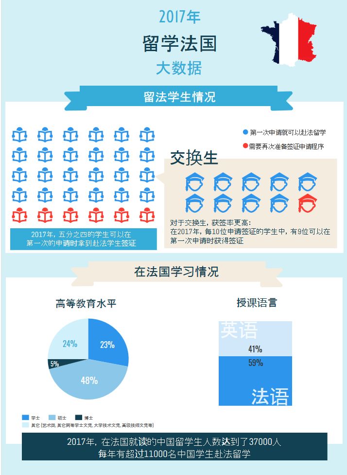 • 簡(jiǎn)化簽證:近年來(lái)法國(guó)留學(xué)簽證政策得到大幅優(yōu)化,五分之四的中國(guó)學(xué)生在首次申請(qǐng)簽證時(shí)即可順利獲得。