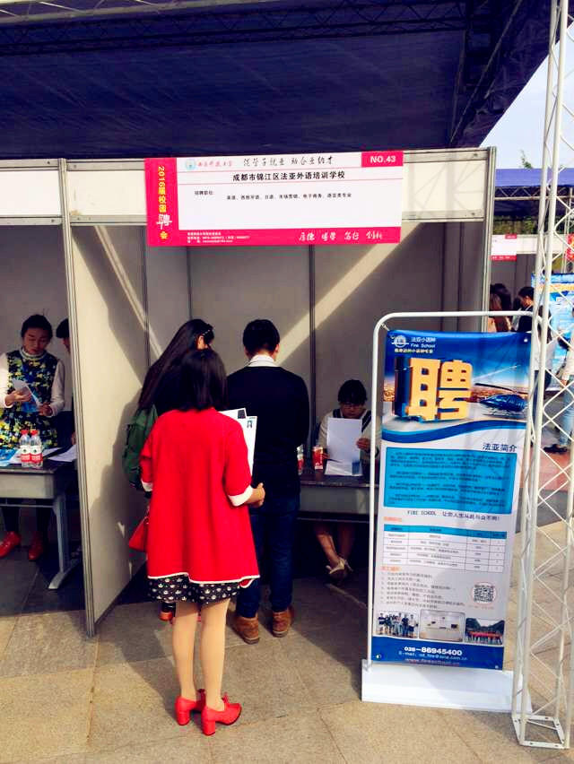 一年一度的校園招聘季又來(lái)了,很多畢業(yè)生又要踏出校門,步入社會(huì)啦,看著那些青春洋溢的小伙伴們,他們揚(yáng)在臉上的自信讓他們神采飛揚(yáng),我們法亞小語(yǔ)種培訓(xùn)學(xué)校也應(yīng)邀參加了在西南科技大學(xué)舉辦的招聘會(huì),下面就讓小亞帶大家去一睹校園招聘會(huì)的盛況吧。