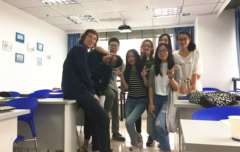 這是李琪老師所帶的法語出國班,外教課的授課氣氛比較自由,學生們跟外教的關(guān)系也比較親近。