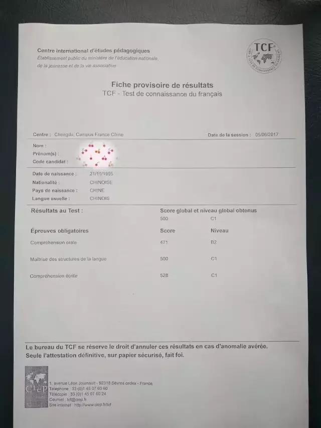 考試類型:TCF所報(bào)課程:法語出國(guó)班