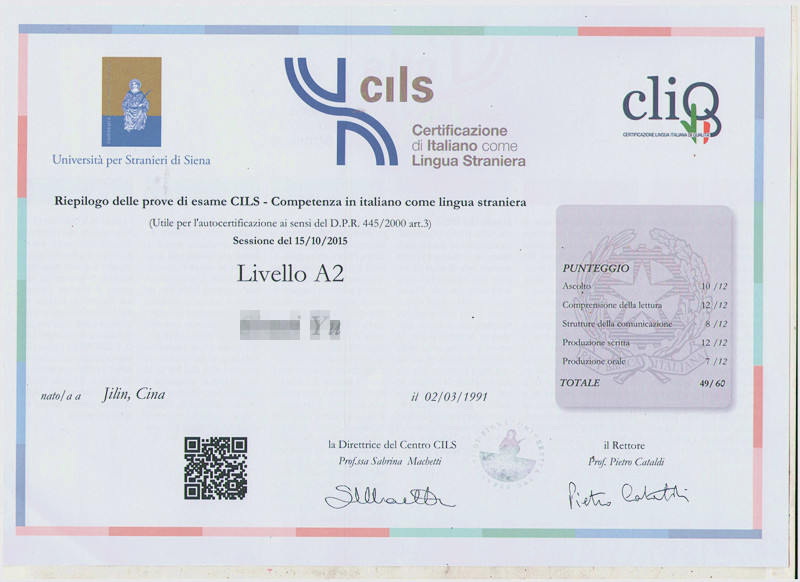 這是法亞歐語中心意大利語班,余同學的成績單,在屈老師的帶領下,小伙伴們全部一次性通過了CILSA2考試,這離不開老師的辛苦教學,也離不開小伙伴們的努力哦,在此,給我們的老師和同學們,一個大大的贊。
