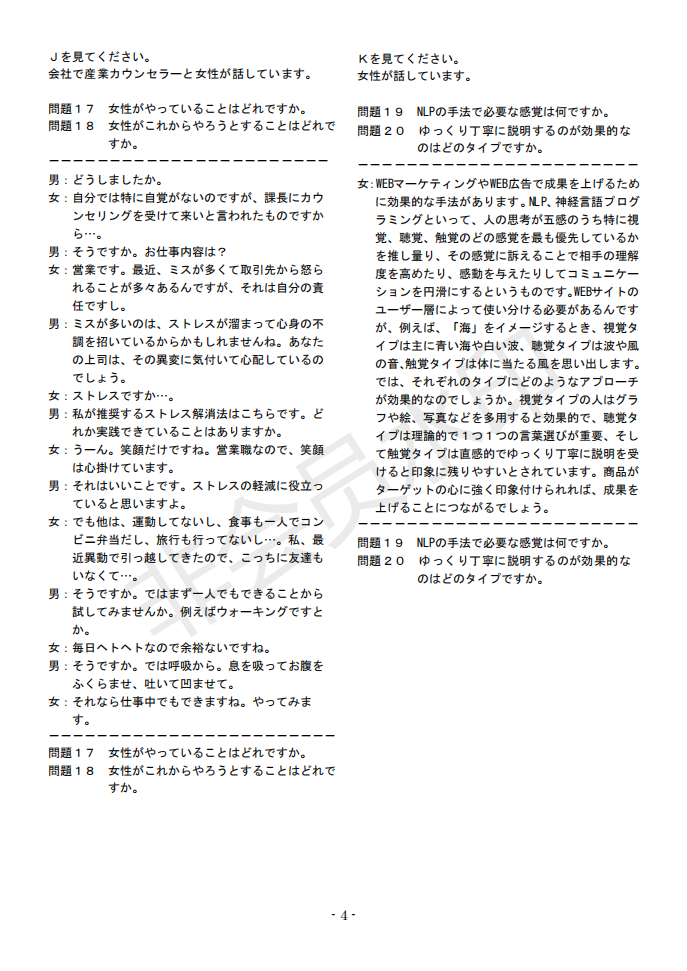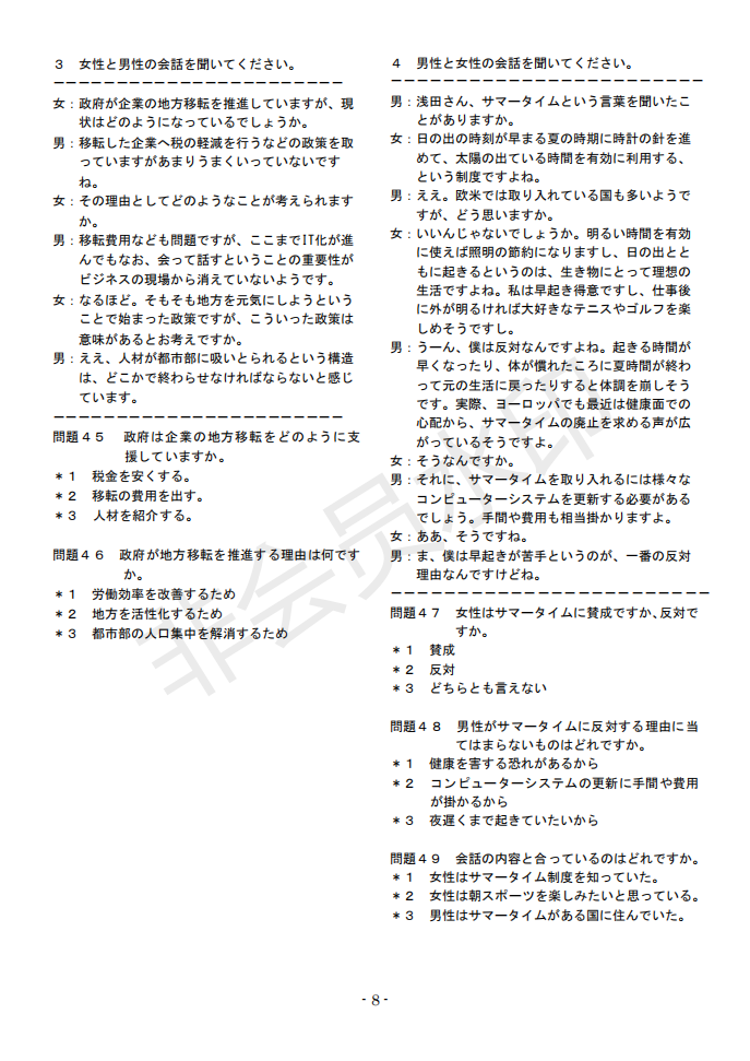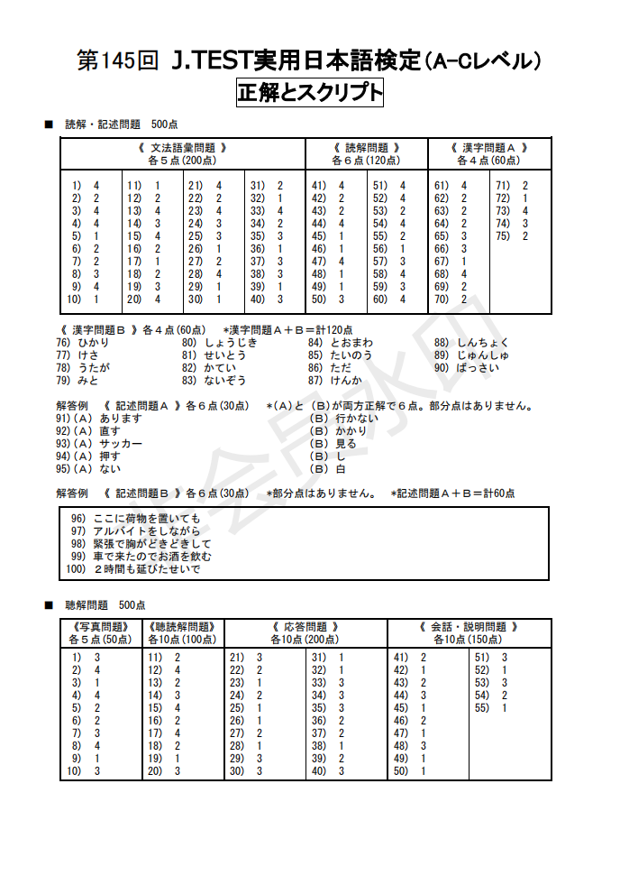 日語J.TEST第145回考試答案(A-C級(jí))