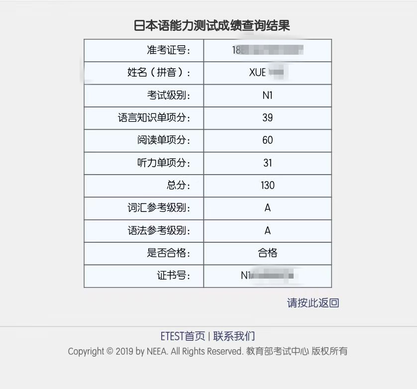 考試類型:JLPT N2所報(bào)課程:日語(yǔ)出國(guó)班倪同學(xué)日語(yǔ)JLPT能力考N2131分