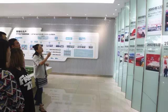 首先,大家對公司的基本構(gòu)架進行了了解。  在大廳的內(nèi)部呈現(xiàn)著四川一汽豐田現(xiàn)在生產(chǎn)的兩款車型,還有公司生產(chǎn)線運行的主要流程。井井有條的布置,一目了然的看板,讓公司每一個出入的人都能對自己的工作區(qū)以及負責(zé)的版塊一目了然。