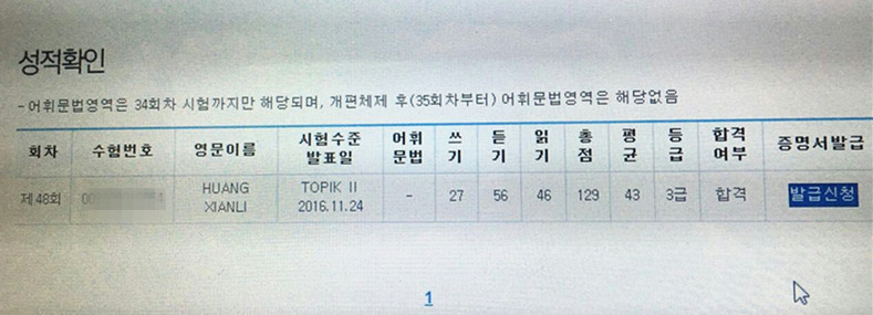 您現(xiàn)在的位置:韓語(yǔ)首頁(yè)韓國(guó)學(xué)員成績(jī)