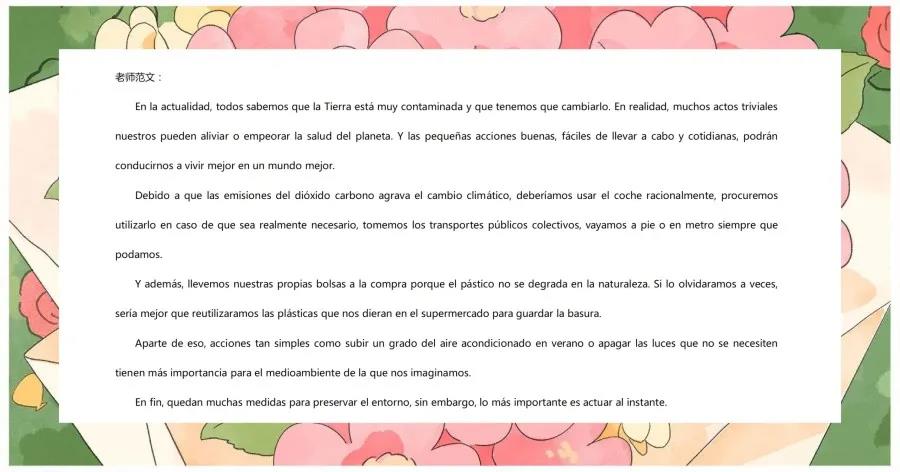 【解析】此次西語高考作文題相對(duì)簡(jiǎn)單,環(huán)境問題一直是全球重點(diǎn)關(guān)注的問題。中國(guó)不僅是各地政府都出臺(tái)有環(huán)境保護(hù)的相關(guān)文件,還用具體行動(dòng)來支持環(huán)境保護(hù)。目前國(guó)內(nèi)大力開展垃圾分類管理,以實(shí)際措施來保護(hù)生態(tài)環(huán)境。所以今年高考的作文題可以從很多方面來寫。