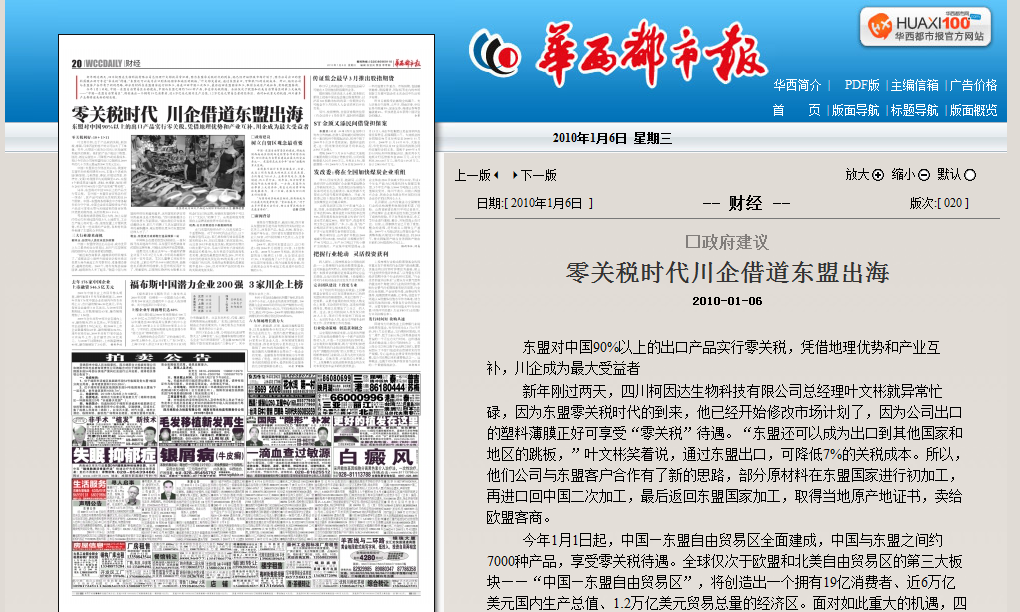 新年剛過兩天,四川柯因達(dá)生物科技有限公司總經(jīng)理葉文彬就異常忙碌,因?yàn)闁|盟零關(guān)稅時(shí)代的到來,他已經(jīng)開始修改市場(chǎng)計(jì)劃了,因?yàn)楣境隹诘乃芰媳∧ふ每上硎堋傲汴P(guān)稅”待遇?!皷|盟還可以成為出口到其他國(guó)家和地區(qū)的跳板,”葉文彬笑著說,通過東盟出口,可降低7%的關(guān)稅成本。所以,他們公司與東盟客戶合作有了新的思路,部分原材料在東盟國(guó)家進(jìn)行初加工,再進(jìn)口回中國(guó)二次加工,最后返回東盟國(guó)家加工,取得當(dāng)?shù)卦a(chǎn)地證書,賣給歐盟客商。